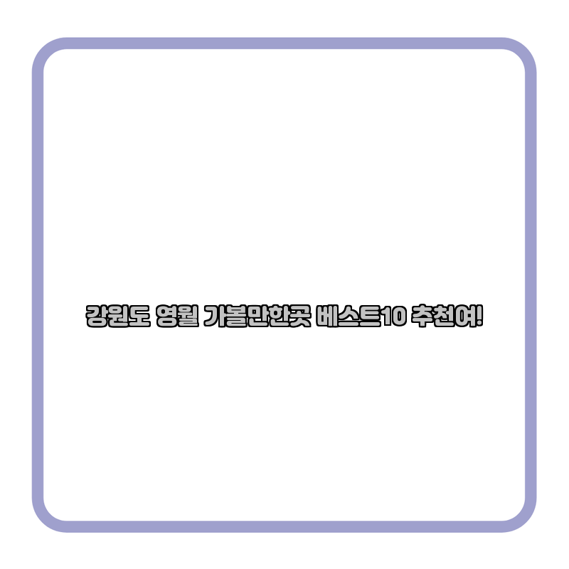 강원도 영월은 자연과 역사, 문화가 어우러진 매력적인 여행지입니다. 위에서 소개한 10곳은 영월을 방문할 때 꼭 가봐야 할 명소들입니다. 여행 계획을 세우고, 영월의 아름다움을 직접 경험해 보세요!